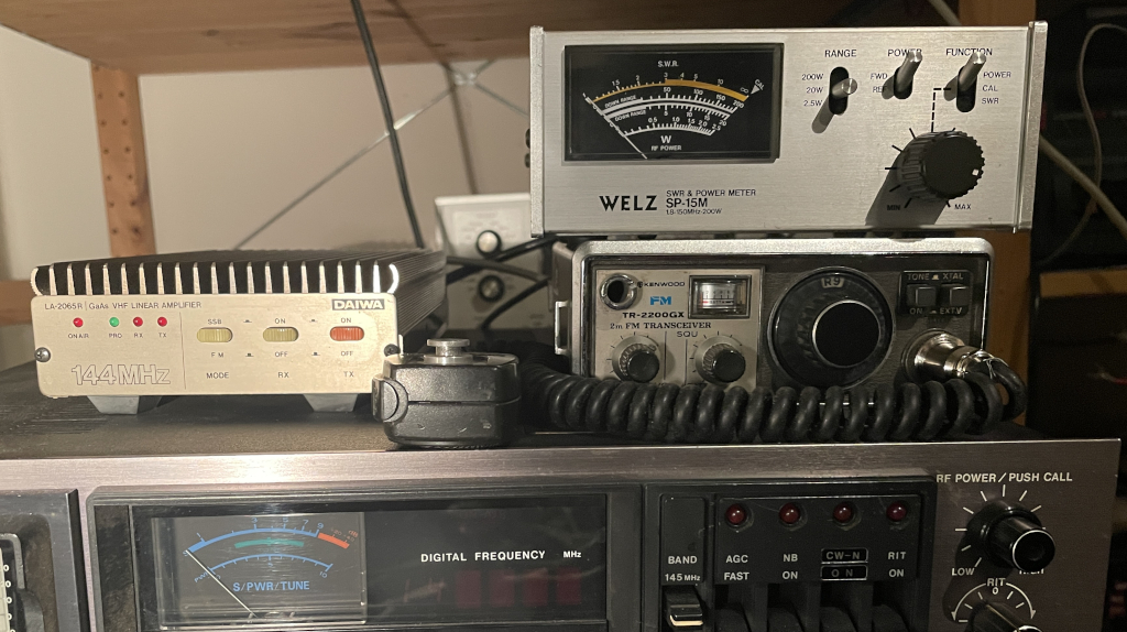 Update: de ronde was een succes! Meer inmelders dan we dachten, met hele leuke oude toestellen. Het was wel een avontuur, want zowel de FT-221R als de C5400 van de bovenste foto bleken allebei het probleem te hebben dat ze heel ongevoelig waren. Alleen de TR2200GX uit de verzameling was erg gevoelig, dus daarmee is nu de ronde gedraaid, met een Daiwa 2065R versterker er achter om toch aan de 20 watt te komen.